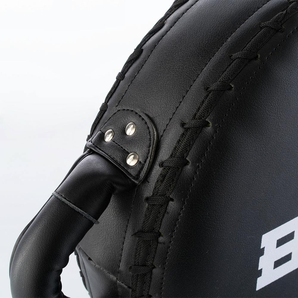 Designed for speed work, tight movements and accurate strikes, the Blitz Apex Circular Strike Shield is constructed to withstand the most powerful blows during countless training sessions. The two solid, conveniently placed, handles either side of the shield offers a secure hold whilst, allowing the holder to position themselves in a variety of tight angles. The perfect strike shield for a number of techniques and styles to be practiced, the circular target demands fast and precise punches or kicks from the striker. The high density foam core also provides the ultimate shock absorption, minimising the force felt by the holder. Easy to wipe clean before and after use. Nama Hide™ leather. Dimensions: 38cm high x 38cm wide x 8cm depth.