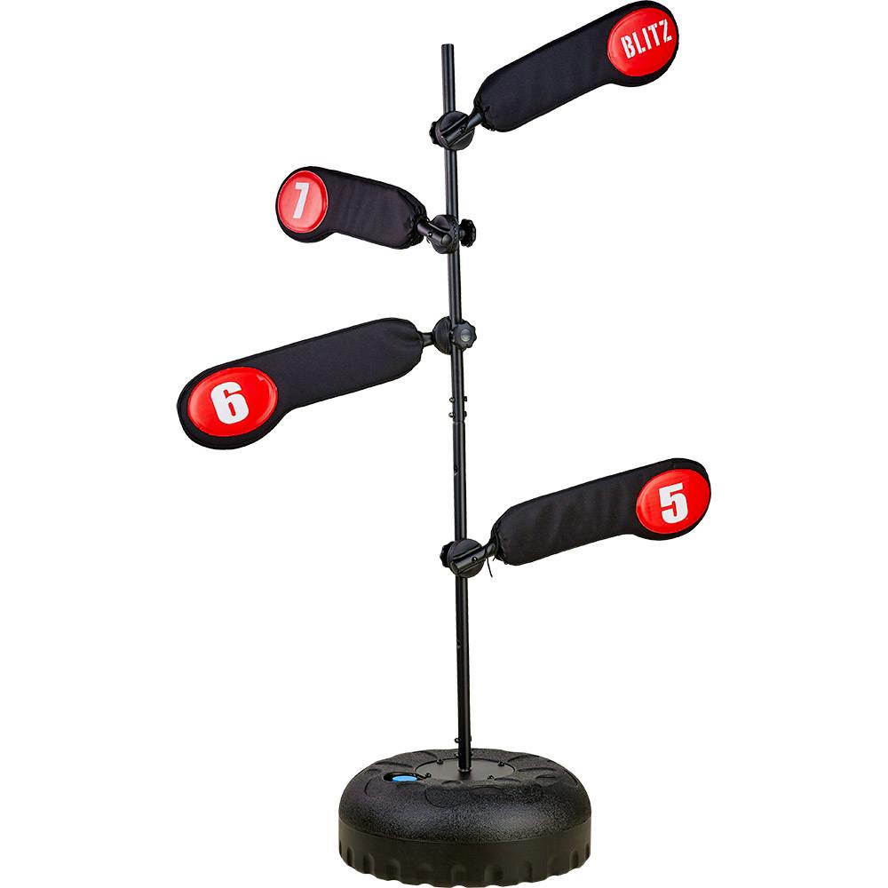 Your essential piece of dojo or gym equipment! A combination of 4 adjustable flexible paddles, that will test your speed and co-ordination to the max! Its central pole can easily be adjusted to ensure most heights are catered for as all paddles can be manoeuvred. Each paddle is covered and can also be adjusted in different directions. Each paddle is numbered from 1 to 7. The base can be filled with water or sand (not both mixed together) which ensures stability of the product. Comes complete with wrench, allen key and with instructions. 170cm in height. Each paddle is 52cm in length.