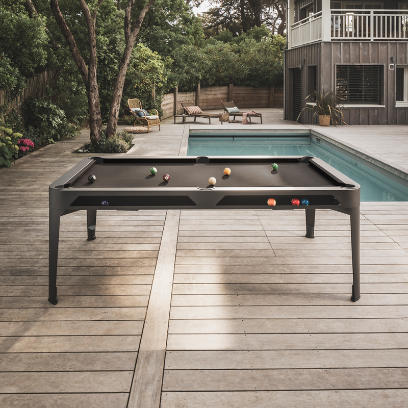 Your Hyphen outdoor pool table withstands miscues and impact of any kind. Designed for social occasions between players of any age and any level, it gives you the freedom to play without worrying about damaging it.