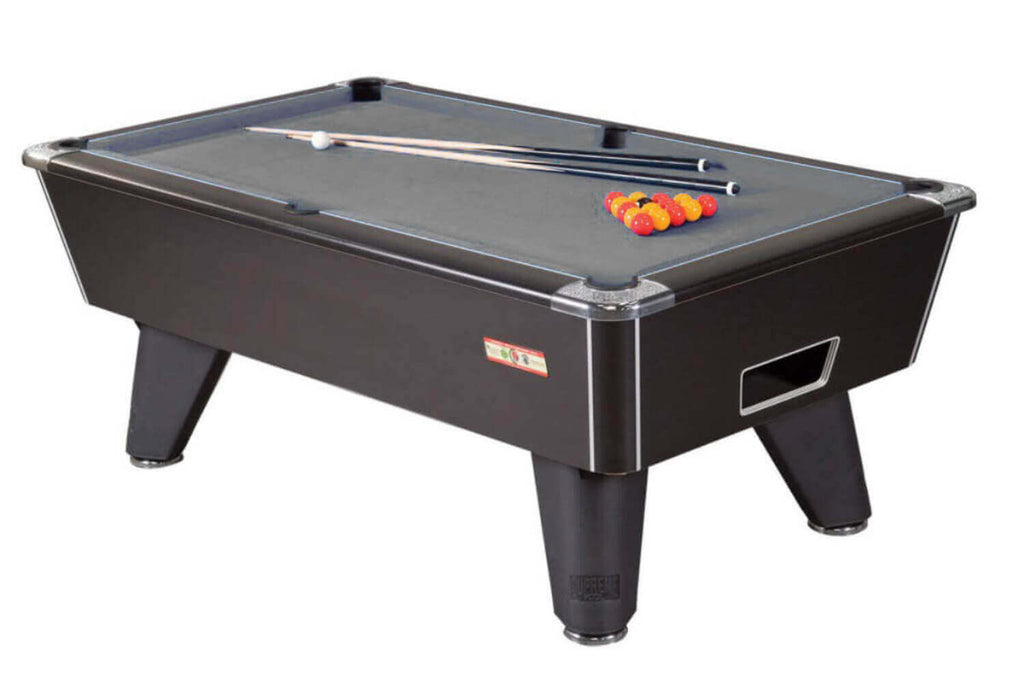 Crafted with tournament-grade British slate, this table features a 3/4-inch thick Italian playing surface. It comes complete with a complimentary accessory pack and holds the endorsement of the World Eightball Pool Federation. Choose between freeplay or coin-operated versions, available in 6ft or 7ft sizes.
